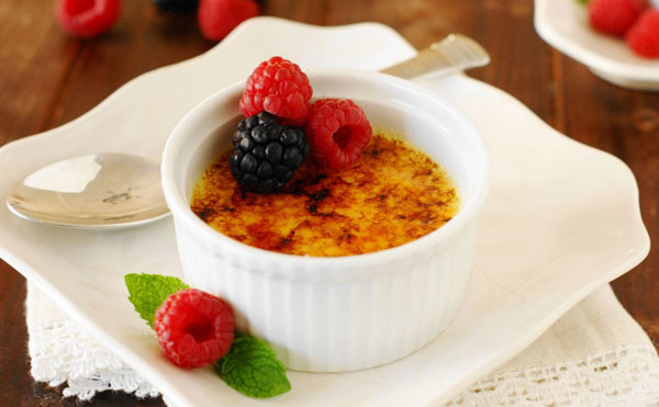 4. Присыпьте десерт сверху сахаром и поставьте под горячий гриль, на 2–3 минуты. Сахар должен растопиться и приобрести золотисто-коричневый оттенок, но не пригореть. Затем остудите, чтобы он образовал хрустящую корочку, и подавайте на стол. Традиционный гарнир – свежие ягоды.