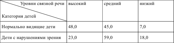 Данные, представленные в таблице, показывают, что у детей с нарушениями зрения уровень развития связной монологической речи ниже, чем у нормально видящих сверстников.