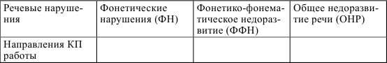 Задание 2. Заполните таблицу «Коррекционно-педагогическая (КП) работа при разных речевых нарушениях у детей с амблиопией и косоглазием»: