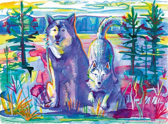 – Но вы всё-таки зря так далеко зашли в лес. Хоть волки вам и родственники, но они могут быть опасны для собак, особенно зимой, когда голодные. Поэтому будьте аккуратней и не попадайтесь им на глаза. А летом они сыты и не будут охотиться на вас.
