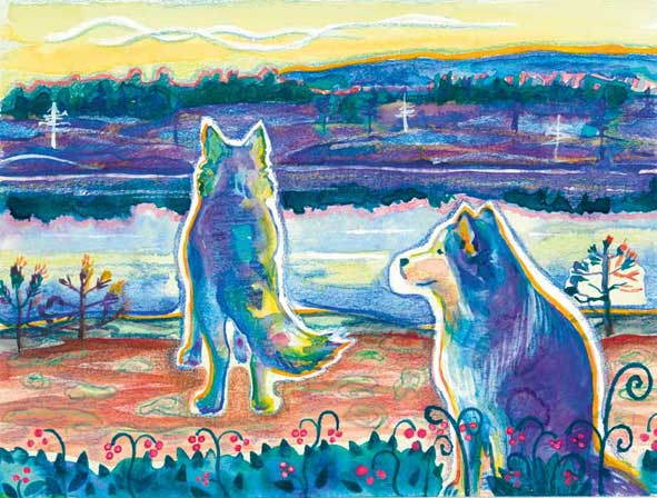 Луми и Кайса – северные собаки. У них зоркий глаз, отличный нюх и тёплая, густая шерсть. Поэтому они могут спать зимой прямо на снегу, хорошо ориентируются в лесу и видят очень далеко. А ещё у них прекрасный слух. Они могут слышать даже разговоры мышек в их норке под землёй. Луми и Кайса – любознательные собаки. Каждый раз во время своих путешествий они открывают что-то новое и интересное для себя. Мир Кайсы и Луми огромный, удивительный и прекрасный. Почитайте сами.