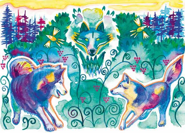 – У всех северных собак на хвосте посередине есть тёмное пятнышко, оно досталось вам от нас, – ответил волк.