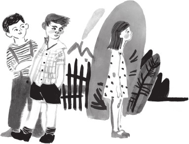 Вдруг калитка почти напротив неё распахнулась, и оттуда появились двое мальчишек лет десяти-одиннадцати. Они стояли с таким видом, как будто всю жизнь только её и ждали. Женька продолжала ехать вперёд как ни в чём не бывало. Вдруг из сада раздался резкий свист, и она увидела ещё одного, стоявшего в развилке старой берёзы. В тот же миг один из тех двух нагнулся и, подобрав с дорожки горсть гравия, с залихватским видом швырнул ей прямо под колёса. Пришлось остановиться. Женька почувствовала, что сердце у неё застучало громко и часто. Она быстро развернула велик, вскочила на него с разбегу и помчалась в сторону дома.