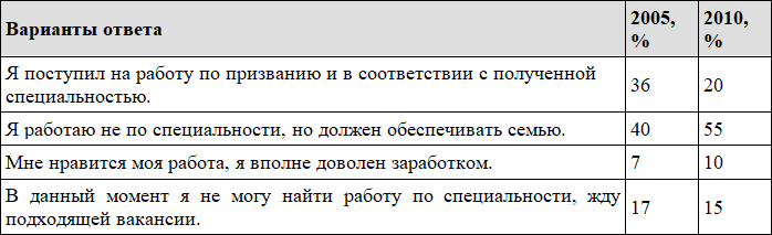 1) Доля граждан, вынужденных работать не по специальности, снизилась.