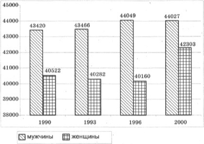 1) Число мужчин трудоспособного возраста в 2000 году больше, чем в 1990, 1993 и 1996 годах.