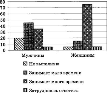 8. В ходе социологического опроса мужчин и женщин страны Z им задавали вопросы: «Вы лично выполняете какую-либо работу по дому? Если да, то сколько времени это у Вас занимает?».