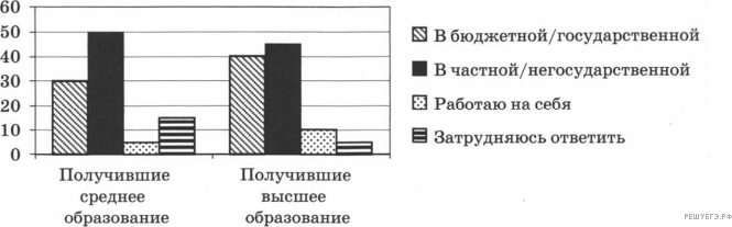 1) Половина опрошенных, получивших среднее образование, работает в частной/негосударственной организации.