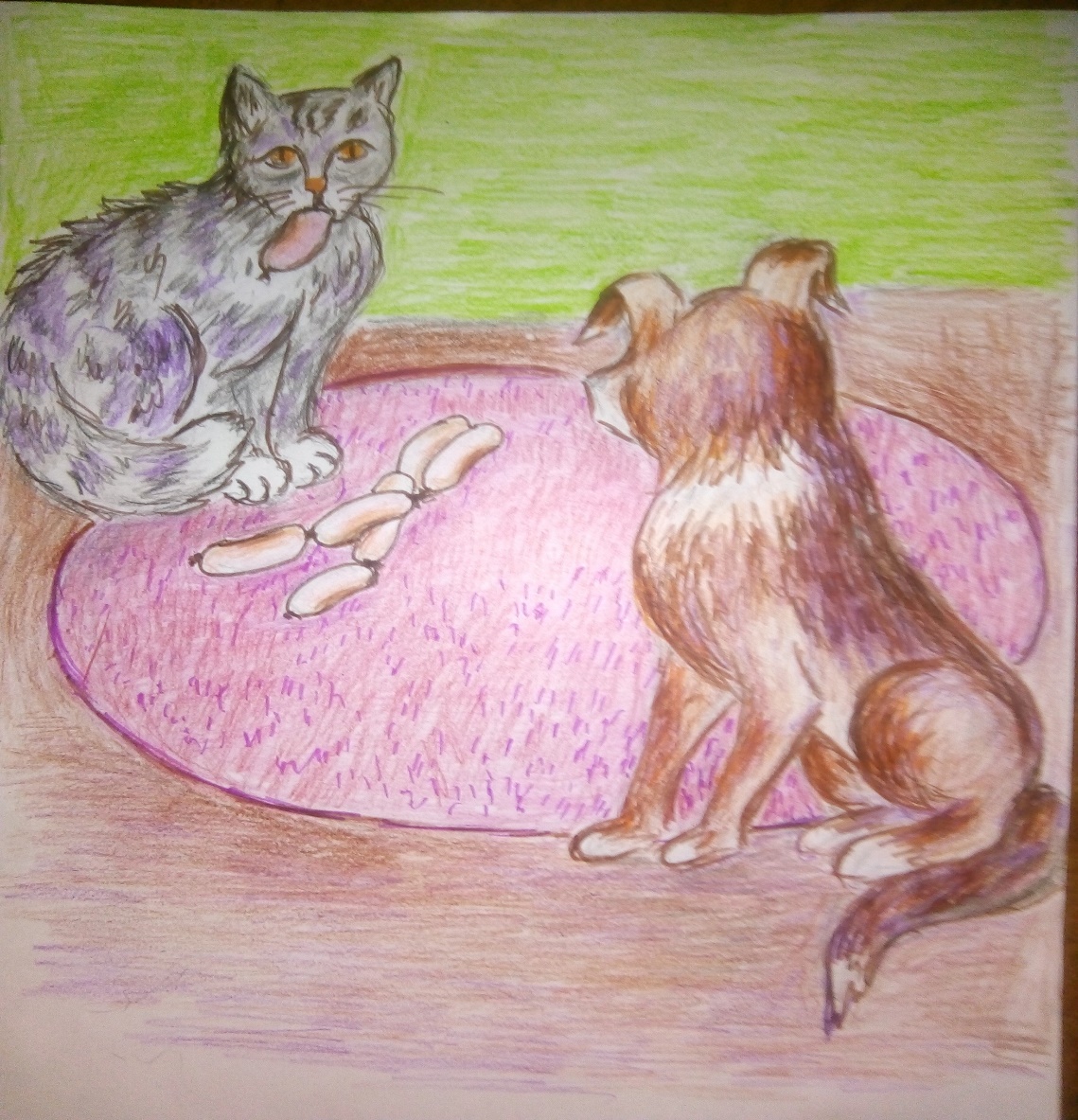 – Ты меня извини, пожалуйста за эту шкоду. Я даже подумать не могла, что она такое вытворит. И не переживай. Я сейчас пойду в магазин и куплю тебе другие взамен. Она взяла со стола одну сардельку и протянула ее Тузику. Тот стоял, понурив голову. Ему было стыдно, что выдал кошку. Ведь она старалась ради своих котят. Но баба Шура ласково потрепав пса по жесткому рыжему загривку, добавила: