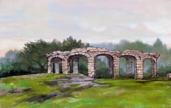 Хищница сильно удивилась увиденному, ей казалось, что все окрестности Арахонии были ею уже давно исследованы, но она никогда раньше не видела этого холма и ни от кого даже не слышала о его существовании! Не забывая держать одно ухо повёрнутым на буксующих преследователей, она настороженно принюхалась к шедшему от развалин запаху. Ветер не принёс определённо враждебных запахов, но навеял до такой степени сильное ощущение чуждости всего строения, что захотелось покинуть это место как можно скорее. Беспричинное чувство тревоги холодком пробежало между лопаток… или это холодила отяжелевшая мокрая шкура? Кошка поёжилась, заворчала, сердясь на себя за непреодолимый, необъяснимый страх возникший в ней, прижав уши, вновь настороженно оглянулась: сильно раскачивающаяся повозка не давала охотникам возможности прицелиться, но каменные россыпи заканчивались сразу перед холмом. Здесь, у подножия странных руин, среди сочной густой травы, камней не было вовсе, кто-то намеренно и аккуратно выбрал их, невольно открывая беспрепятственный проезд для повозки.