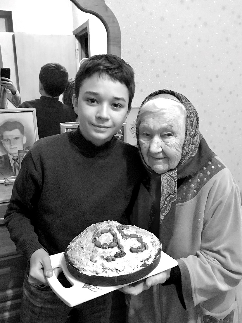 На фото: Правнук Максим испёк торт на Шурино 95-летие.