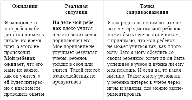 Где же найти неконфликтное место соприкосновения наших стратегий воспитания и детских моделей поведения? В осознанном отношении родителей к своей роли в воспитании дошкольника и понимании того, зачем надо именно в эту минуту именно так реагировать на поведение ребенка (табл. 1). Когда родитель может осознанно (на время) отдать свою ведущую роль ребенку.