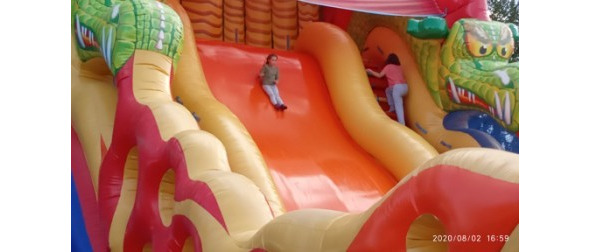 Вы любите развлекаться на надувных горках? А если горка высоченная, размером с двухэтажный дом? Вот и я сегодня от души навеселилась на такой горке! Бабушка с дедушкой не мешали мне: уютно устроились на скамейке напротив горки и наслаждались свежим озёрным воздухом.
