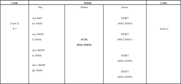 Note that in case of positive answer to the question the ending of a noun does not change: – У вас есть машина? (Do you have a car?) – У меня есть машина (I have a car). The only difference is that “У вас…” has changed to “У меня…”