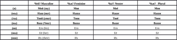 The gender of a noun determines the choice of a pronoun which it refers to, such as мой (masculine gender), моя (feminine gender), моё (neutral gender), мои (plural). For example, it is wrong to say: Это мой жена. The noun “жена” is of feminine gender, therefore, you must choose the pronoun “моя”. And then the correct answer is: Это моя жена.
