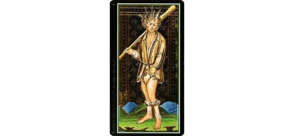 Глядя на Аркан Шут, мы можем узнать, как в то время относились к людям с психическими расстройствами. Например, в Таро Висконти-Сфорца Шут явно имеет пороки развития и не способен двигаться по жизненному пути, ведь у него даже штаны спущены (рис. 2). Он несколько угрожающе держит дубинку. Потому что в эпоху Средневековья людей с пороками развития боялись, а Таро Висконти-Сфорца создано именно в это время.