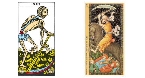 Рис. 32. Справа – Смерть из Марсельского Таро (Jodorowsky & Camoin), слева – из Золотого Флорентийского Таро