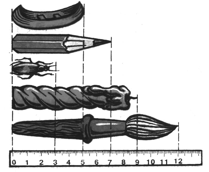Представления учащихся уточняются: нарисованные предметы обладают свойством, которое называется длина. Данные предметы можно сравнивать по длине. На рисунке должно быть хорошо видно, длина какого отрезка больше, а какого меньше.