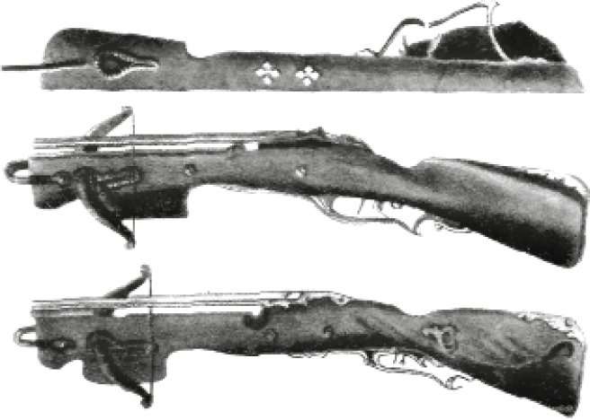 В XI столетии вместе с другими диковинами крестоносцы привезли в Европу из Палестины новое сарацинское оружие. Называлось оно арбалетом. Это был укороченный лук, прикрепленный к деревянному ложу с прикладом.