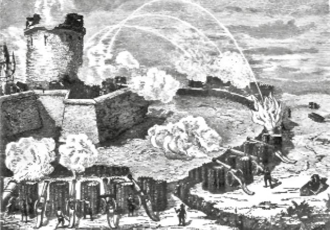 Когда глыбы были разбиты, наступила очередь пушкарей. Огонь открыли самые маленькие пушки. Постепенно в дело вступали орудия все больших и больших калибров. Трижды перезаряжали пушки, и трижды гремели выстрелы по всей линии.