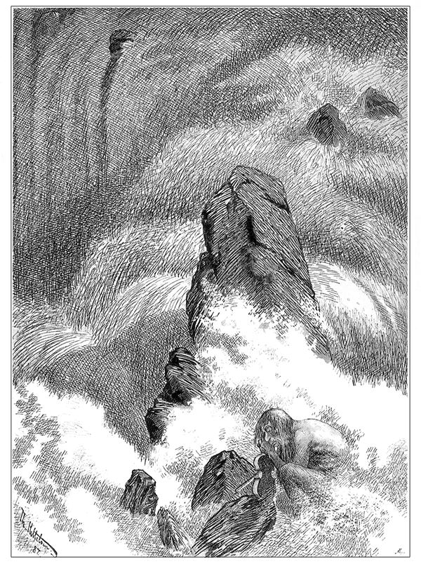 Иллюстрация к рассказу «Дух водопада» из книги «Волшебство», 1892.