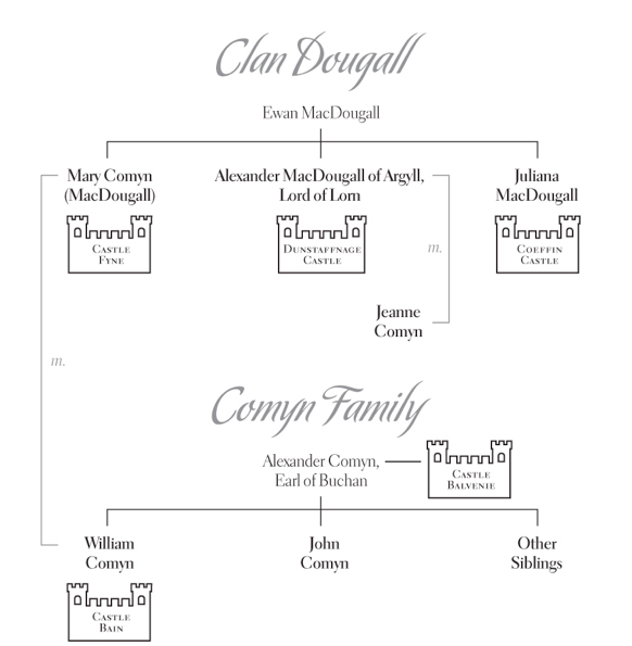 Mary’s husband William Comyn had gone to war with their brother, Alexander MacDougall, along with a great many other Comyn and MacDougall kin, to keep Robert Bruce from the throne—in the hopes of one day crowning John Balliol, instead.