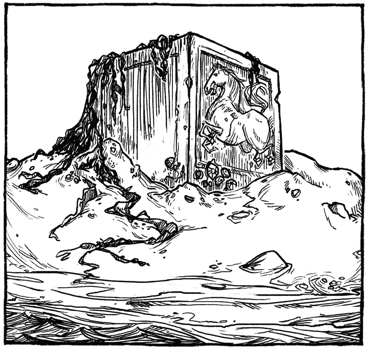 Он помчался по песку, а потом – по тропе, ведущей в нижний лес. Он бежал по тропе из сломанных деревьев, и красные крабы бросались врассыпную. Он добежал до большого каноэ и влез по борту наверх. Тут было… да, вот оно – большое одеяло в углу. Мау схватил его и потащил, но что-то вцепилось в другой конец одеяла. Он потянул сильнее, и что-то рухнуло на палубу и затрещало, разлетаясь на куски.