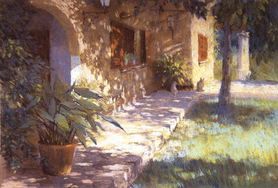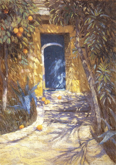 Many of the problems that will confront you when painting can often be resolved by producing preliminary studies, either in monochrome or with limited colours, to help sort out doubts or uncertainties in the interpretation of your subjects. These can be small thumbnail sketches, or larger studies similar to Garden, Malcesine, Italy on page 8. This was produced using one warm and one cool colour to establish the distribution of tonal values, direction of lighting and colour temperature (the relative warm/cool colour relationships) within the proposed image.