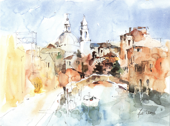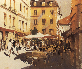 There is also great potential in urban scenes. A good way of working in cities is to make sketches and to take photographs. These can often make excellent references for finished paintings that can be produced in the studio or at home. Many years ago, when I lived in London, I spent many early mornings sketching in local streets from the comfort of my car, afterwards taking a photograph of the same subject to correct any infidelities of scale or perspective in my sketch.