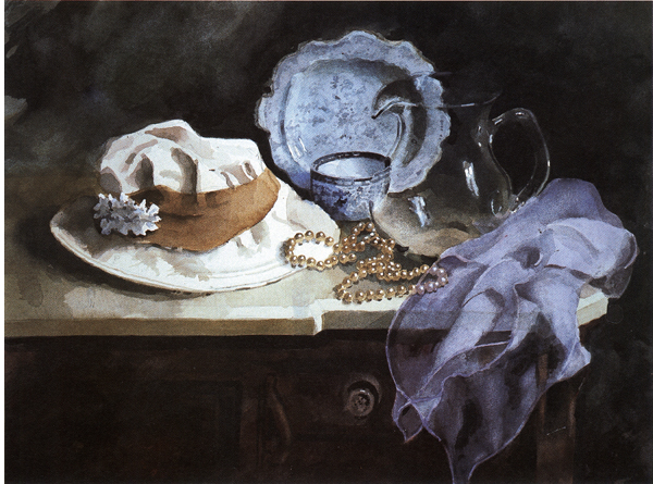 Just a few objects of varying colour, shape and texture can be stimulating to paint. I carefully drew and painted this set-up to provide a ‘realistic’ quality, but a much looser treatment can also make for an interesting painting. Keep your eyes open in antique shops for items that have particular qualities.