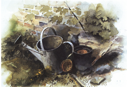 A few items in a garden corner can be all that are needed to make an interesting subject. I have positioned the watering can and a flower pot at odd angles to suggest an untidy effect. The weeds and stones contribute to a feeling of neglect that is slightly at odds with the title of the picture.