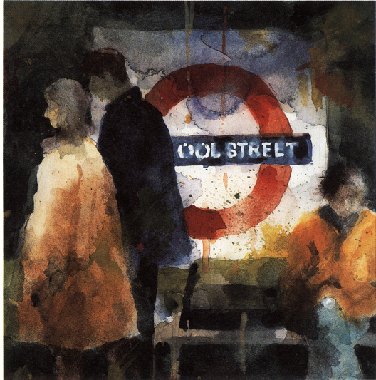 Inspiration can even be found below ground. I kept this painting very loose, allowing the paint to run freely, dropping pure colour into wet washes; I further broke up the imagery by flicking colour onto the painting surface.