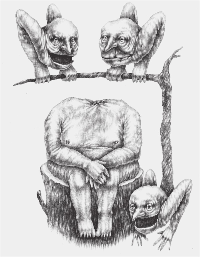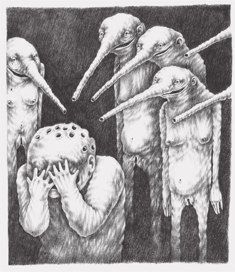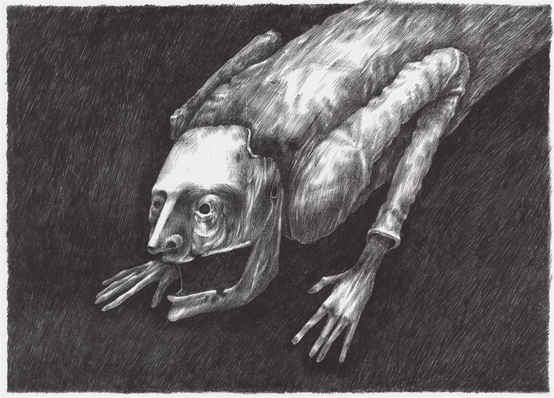 Der Hautkopf ist ein fremdes WesenEr sucht sein Heil am HorizontStreckt seinen geraden Arm zur WeltКожеголовый