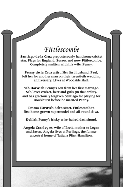 He was followed by his wife, Penny. Widely agreed to be both the kindest woman in Fittlescombe and the worst dressed, Penny de la Cruz was almost invisible tonight beneath about six layers of sweaters, her wild, Pre-Raphaelite hair spilling out at the top like a fountain. Penny, bravely, had been on the side of the ramblers in the great ‘right-to-roam’ debacle. Santiago felt strongly that they should all be shot.