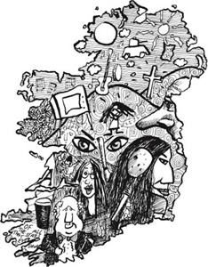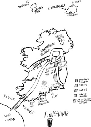 This book is based on journeys I made to Ireland in 1998, and on various forays back to previous visits, or (in one or two cases) into an alternative reality. It’s divided into a series of ancient mythical areas, which I’ve made up. Some names have been changed, some have stayed the same. I’d like to think that you can start at whatever point you want in the book. Think of it as a rambling pub conversation about all kinds of trivia such as What is Irishness? What is Englishness? What is nationality? Who are we? Who are you? Are you staring at my leprechaun? Ah, so many questions and so little drinking time …