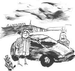 At Holyhead, in the cold flinty early morning light, we were one of the first cars in the queue. We both stared out at a shard of fading orange in the clouds. Go and see your family, I said, seemingly on some kind of repatriation mission. We got out of the car and went to check the ferry times. It would cost him a tenner to come back over. He waddled over to the phone to call his sister, who lived down in the southwest, to see if she would wire him twenty pounds to a bank somewhere in Dublin. It all sounded a bit elaborate to me. But the sister wasn’t there, only the husband, and he didn’t want to do anything until the sister came back. I didn’t understand. Someone in your family asks you for twenty quid – is it that big a decision? (Mad Relation: ‘Yeah but Tim, what if the IRA got their hands on the money, they’d be using it to buy missiles from Libya and that.’) I walked around Duty Free while he sat in the car trying to think what he should do. I got back in and handed over twenty quid, obviously expecting never to see it again. He must have read my mind.