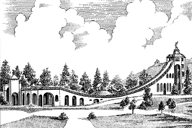 Promenades aériennes («Воздушные прогулки»), построенные в 1817 году в Париже, в парке Божон. С гравюры Амбруаза Луи Гарнерэ