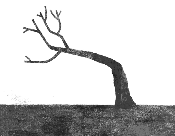 Иссохшее кривое дерево, всколыхнувшись, дрожит. Нет, оно не падает. С ним происходит что-то необычайное. Сутулый ствол становится толще, а две могучие ветви делаются всё длиннее, пока наконец не касаются земли, превратившись в крепкие копыта.