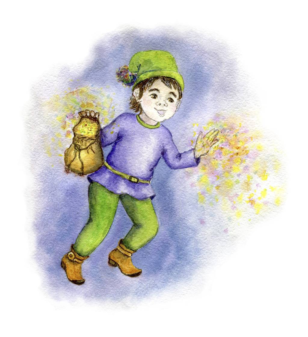 Сидят три гномика и смотрят, как мальчики и девочки во сне улыбаются. Только и слышно, как маленькие носики сопят. Гномики, довольные проделанной работой, спешат к другим деткам.