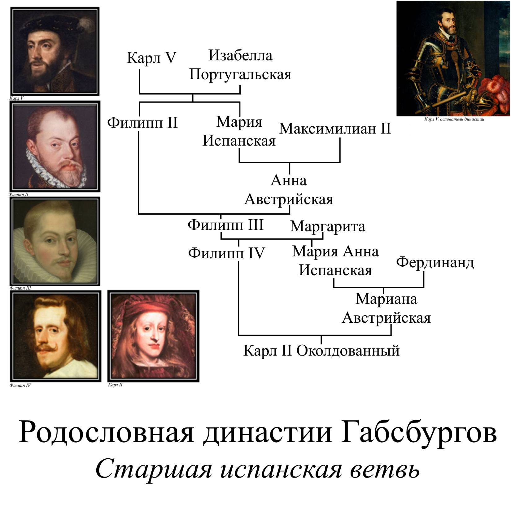 Рисунок 3 – Родословная династии Габсбургов, Старшая испанская ветвь