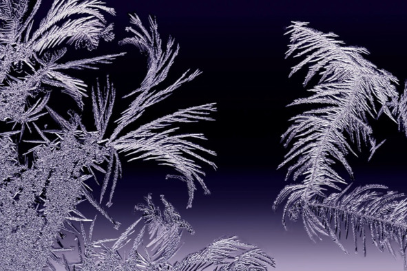 Мороз крепчает, и на окнах деревенских домов и стёклах городских балконов вырастают поражающие своим разнообразием узоры, которые также состоят из кристаллов воды (рис. 12).
