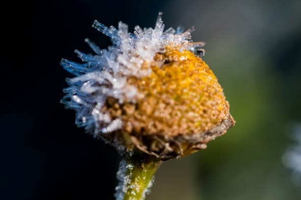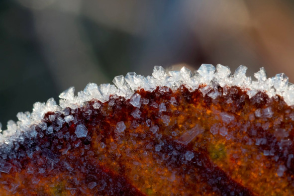 Как только солнце приподнимется над горизонтом, жизнь кристаллов инея заканчивается, они превращаются в одинаковые капли (рис. 8). Волшебство исчезает.