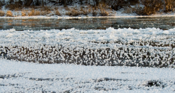 Рис. 9. Шуга на реке и цветы инея на молодом льду