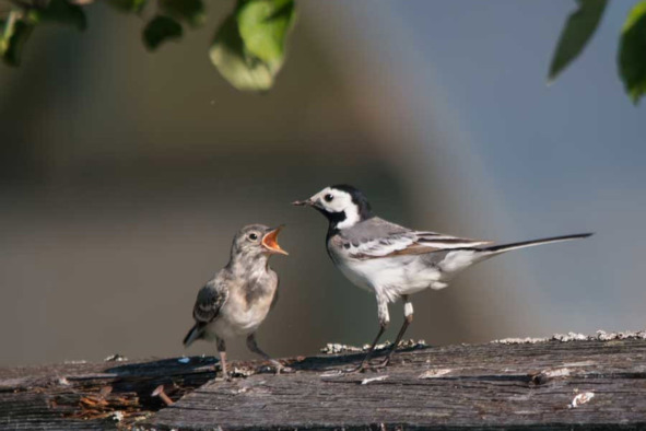 Рис. 13. Молодая белая трясогузка кормит слётка