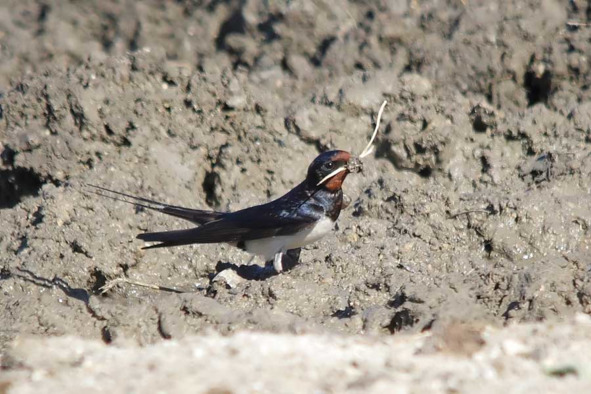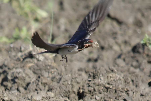Рис. 28. Деревенская ласточка набирает материал для строительства гнезда