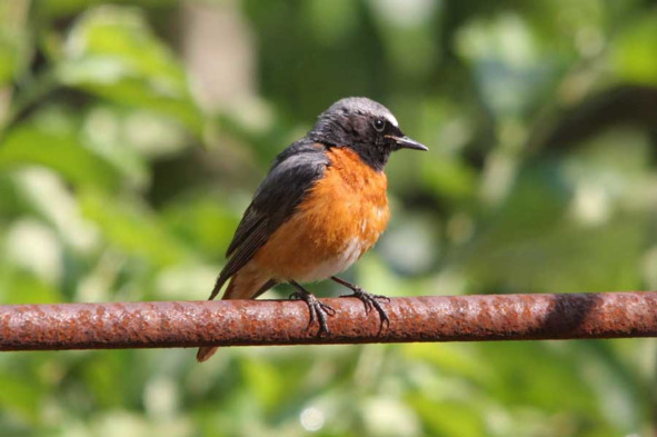 Возле дома можно встретить также горихвосток. Небольшие птички, чуть меньше воробья, относятся к семейству дроздовых. Помимо собственно дроздов к этому же семейству относятся соловьи, зарянки, каменки, о которых речь пойдёт позже. Птиц этого семейства отличают большие выразительные глаза. Горихвостки охотно селятся в парках и зонах малоэтажной застройки, где есть деревья. Самец обыкновенной горихвостки (Phoenicurus phoenicurus), называемой также горихвосткой-лысушкой или садовой горихвосткой, отличается яркой, заметной окраской оперения (рис. 37). Самочка (рис. 38) скромнее, без яркого красного цвета на груди, однако рыжий хвост всё же «горит». Этих птиц много в горной части Крыма, там их даже называют лесными воробьями, однако же эти снимки сделаны в селе, на участке, где эта парочка и гнездилась.