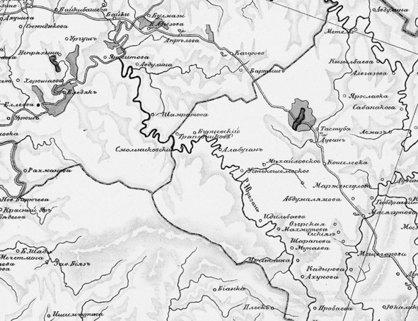 В 1758 году два симбирских купца, оба Иваны – Твердышев и Мясников, основали на Юрюзани и её левом притоке Катаве железоделательные заводы: Юрюзань-Ивановский и Катав-Ивановский51. Спустя несколько лет были основаны также Симский и Усть-Катавский, а также небольшой завод на правом притоке Юрюзани Минке. Строительство заводов именно на реках в то время обусловливалось объективной необходимостью. С одной стороны, река, на которой ставилась плотина и образовывался пруд, давала механическую энергию, необходимую для приведения в движение молотов, воздуходувных и других механизмов. С другой – река служила дорогой для вывоза продукции к местам потребления. Подобных горных заводов, как пишет Алексей Иванов52, на Урале было построено около 250, что дало основание характеризовать их как уникальный культурный феномен, получивший название «горнозаводская цивилизация». Селение строилось вокруг завода и пруда. Вот что пишет А. Иванов по поводу таких селений: «Горные заводы стояли в распадках – прудам удобнее лежать меж холмов, поэтому оба берега пруда и речки были крутые, улочки шли террасами. Жить здесь было неудобно, однако завод строили не там, где удобно жить, а там, где удобно работать. … И посёлок, загнанный на косогоры, жертвовал заводу радостью жизни». Ну прямо как про Калмаш написано, разве что пруда в Калмаше никогда не было, однако отличие промышленного посёлка от крестьянских деревень на Юрюзани обрисовано точно.