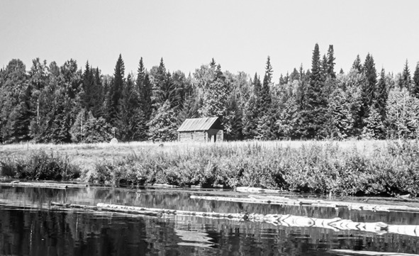 Рис. 22. Избушка сплавщиков на берегу Юрюзани в районе урочища Семиостровное, 1972 год