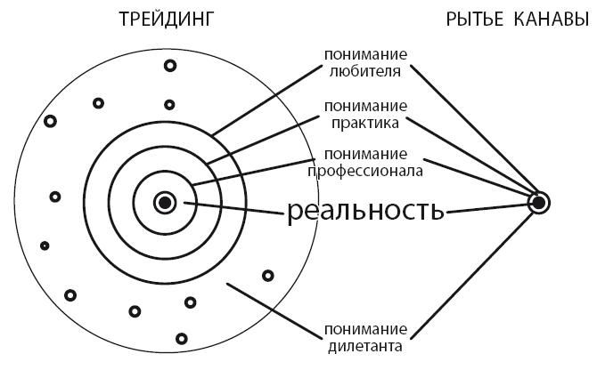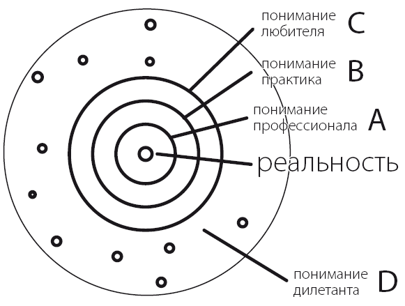 Если ваше понимание находится в точке А (профессионал), то, возможно, вам нет смысла продолжать чтение этой книги. Разве только для развлечения, поиска новых идей или критики автора. Если ваше понимание находится на уровне D (дилетант), польза от данной книги будет максимальной, но лишь в том случае, если вы поверите в ее содержание и примите его для себя. Если же вы находитесь между точками B и C, то эта книга может помочь структурировать информацию в вашей голове, дать вам новые идеи и завершить формирование целостного подхода к трейдингу.