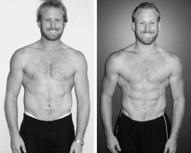 Натан Зару: 8 % жира. Несмотря на освещение в стиле «Невероятного Халка», я считаю этот снимок наиболее наглядным: он дает возможность представить себе, как выглядят 8 % жира у мужчин с приличным мышечным тонусом. Люди склонны недооценивать долю телесного жира. Если у вас есть хоть немного мышц, а доля жира не превышает 10 %, вы наверняка выглядите почти как на этом снимке.