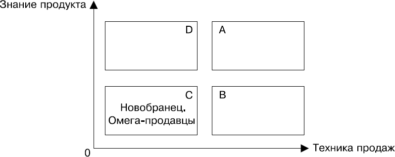 Таким образом, в квадранте С у нас живут две категории продавцов – новички и омеги (рис. 4.4).